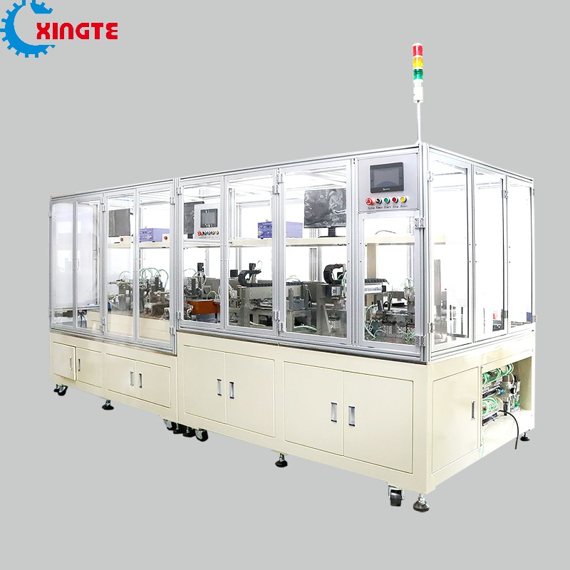 This machine is a fully automatic magnetic circuit assembly machine for mobile phone speakers. Each fixture can assemble two products.