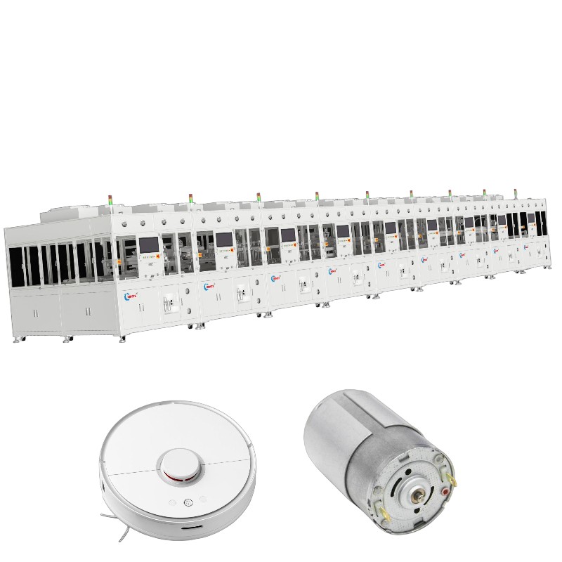 This is a highly automated, process-covered production line designed specifically for sweeping robot motor